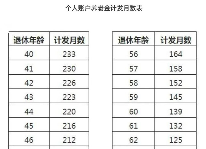 计发月数根据退休年龄不同有所不同,具体见下表,60周岁退休对应的计发月数是139。