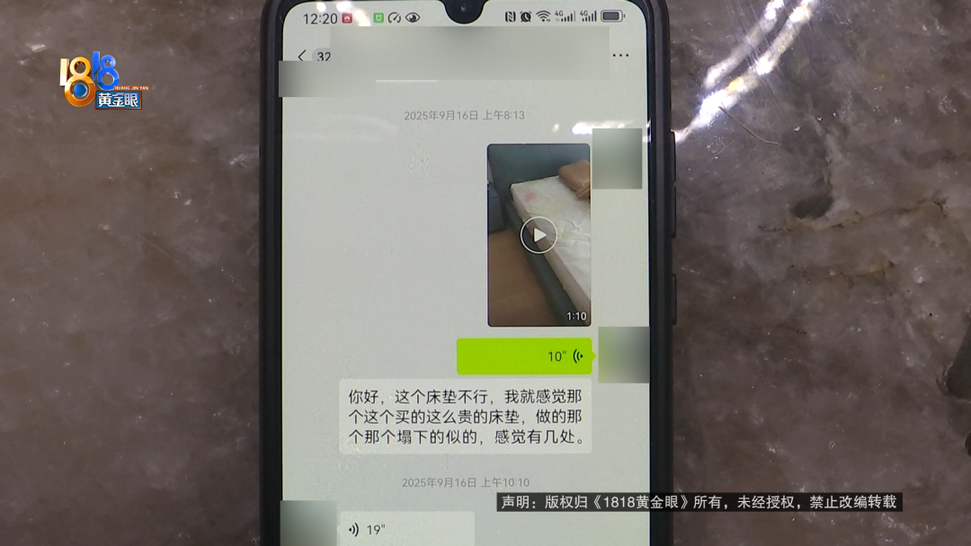 主卧床垫已经换过了,不过谢先生说,送到家的第二天,他又向店里反映过问题。