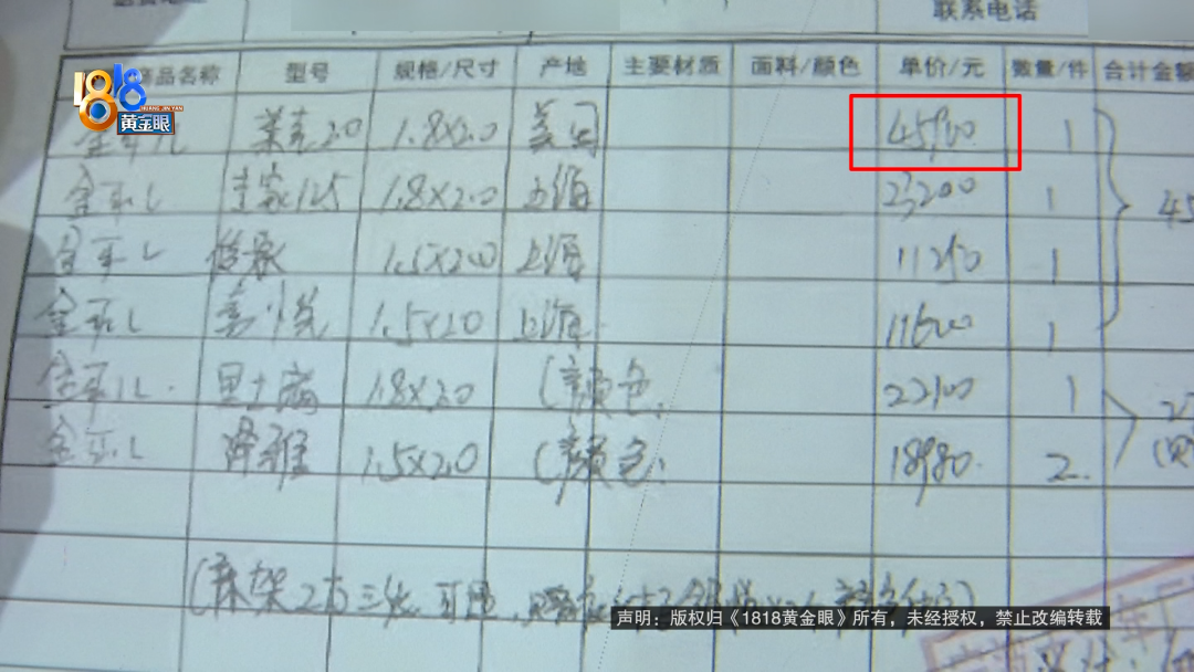 销售单上,这一张床垫的原价要45900元,优惠后实付2万多,还标注了“美国”,一起买的另外三张床垫,标注的是“上海”。