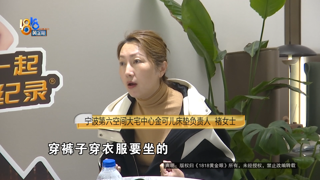 宁波第六空间大宅中心金可儿床垫负责人 褚女士:换不了。因为我说实话,这种换法我做生意,对其他客户怎么交代?每个人体感上有点变化就来提出要求,我们咋弄啊?
